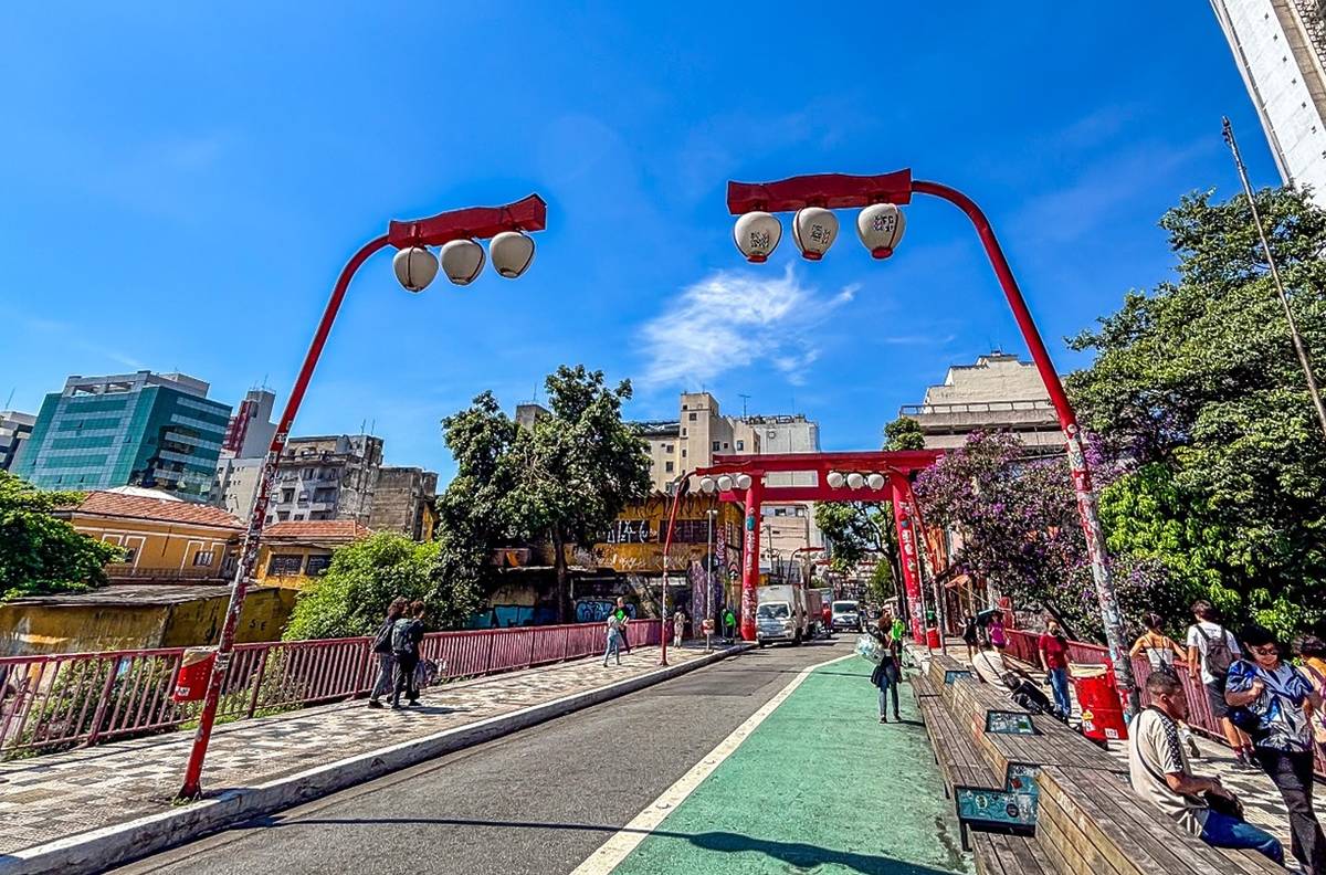 En la calle Galvão Bueno, las tradicionales linternas japonesas, que adornan la mayor parte de las calles de la zona, y el gran pórtico (torii) quedan genial en las fotos.